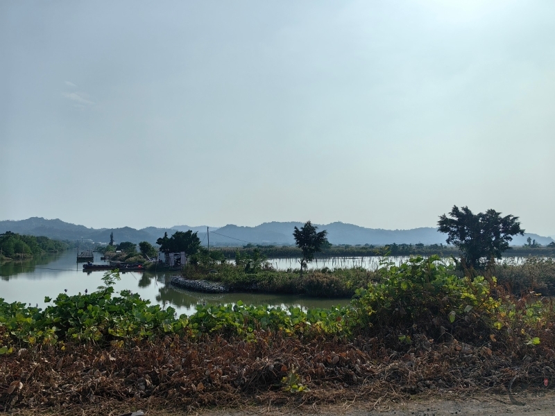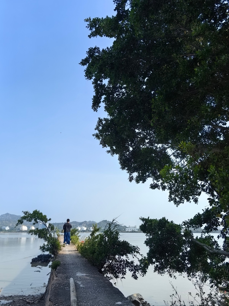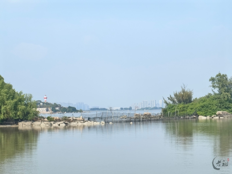 位于草屿岛,通过堤坝与陆地相连,周边有榕江出海口湿地和渔村风貌。