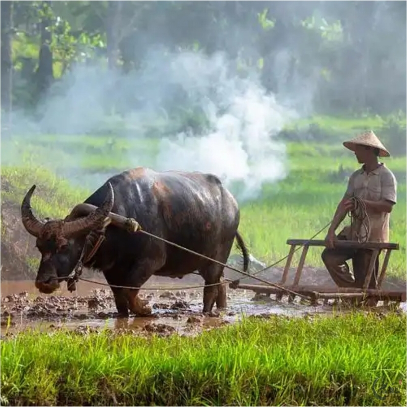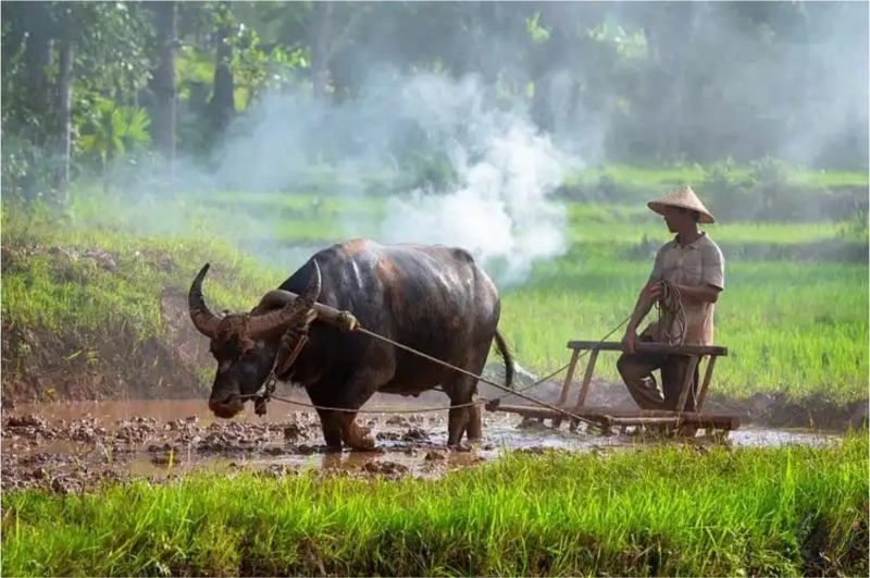 1. 水牛为主:因潮汕气候湿热、水田泥泞,耐劳苦、蹄宽大的水牛成为首选,每头牛日均犁田约1-2亩。