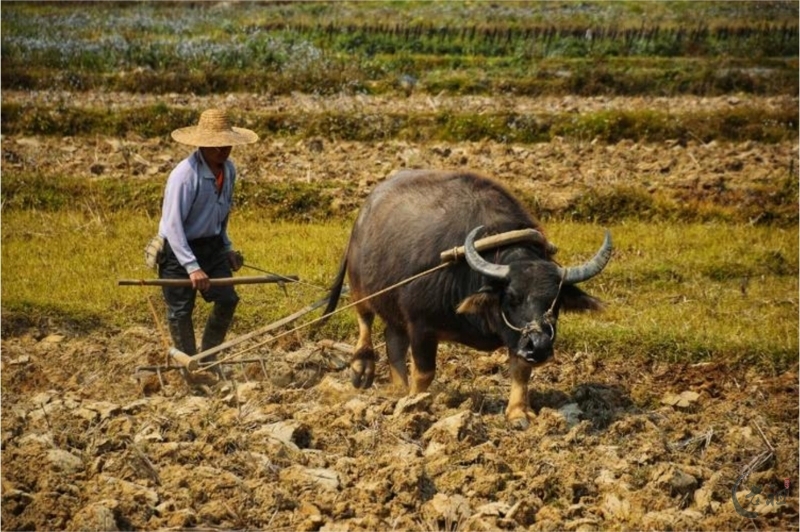 2. 黄牛辅助:在沙质田或旱地中使用黄牛,但其力量较水牛弱。