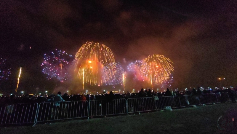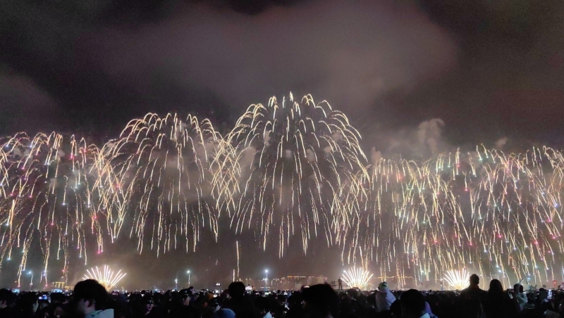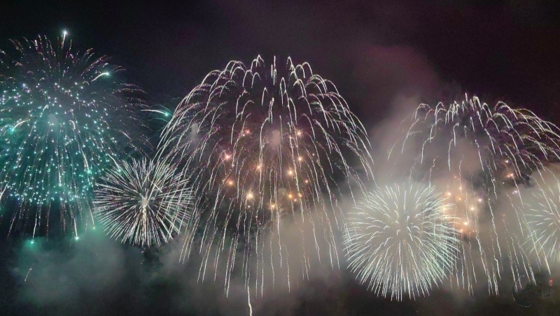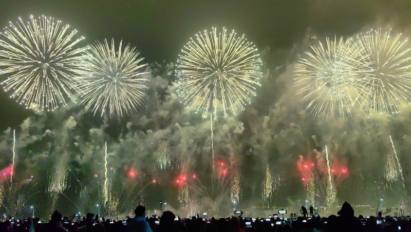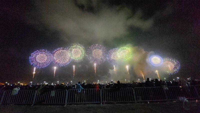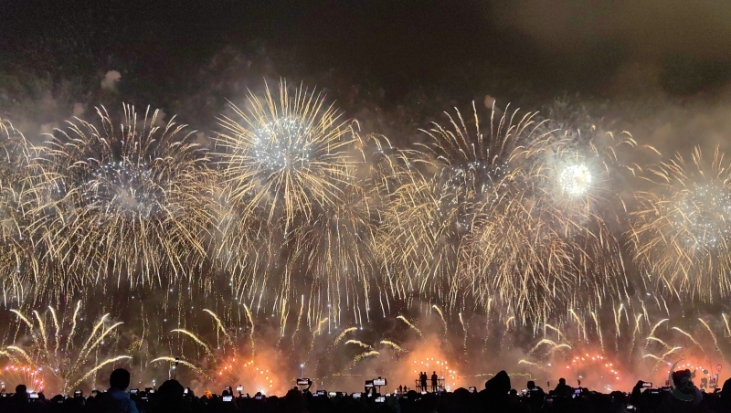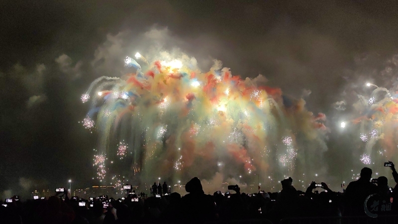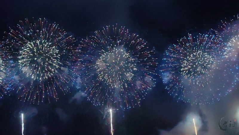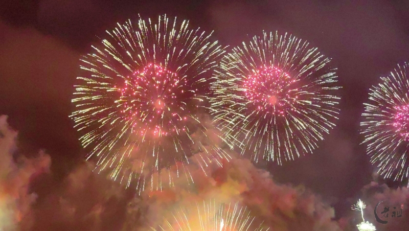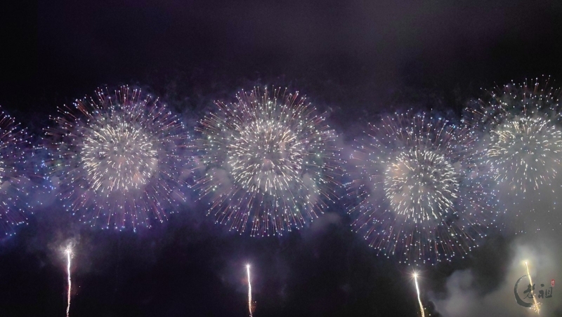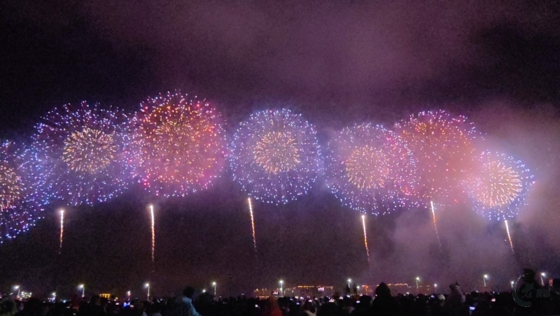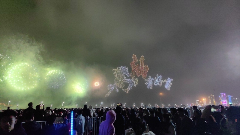 “马跃潮头承文脉,汕聚华章启新程”为主题,采用9艘焰火船组成1.2公里燃放阵线,使用包括直径达150米的12寸烟花在内的近11万发烟花,并配合1万架无人机编队和26台激光设备,打造国内首次超大规模三维动态交互表演。
