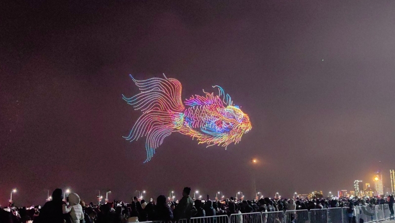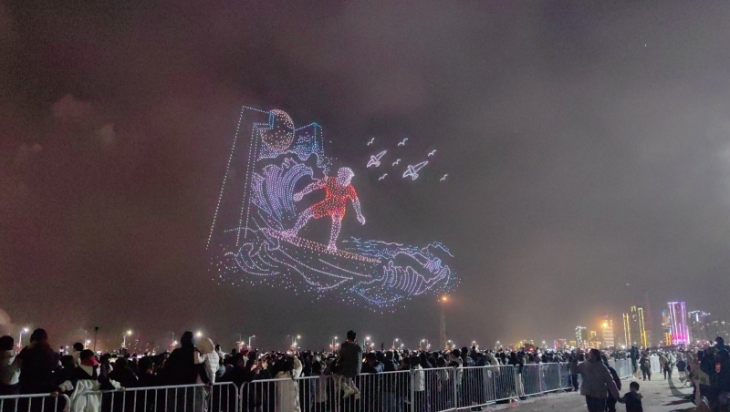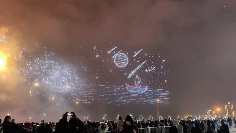 在这一篇章里,多语种、多国别的新年祝福弹幕,与海湾粼粼倒影交相辉映。伴随漫天焰火,表演迎来最高潮——无人机编队将直接呈现本次晚会主题“马汕有好事”,祝福马年千里、万事大吉。