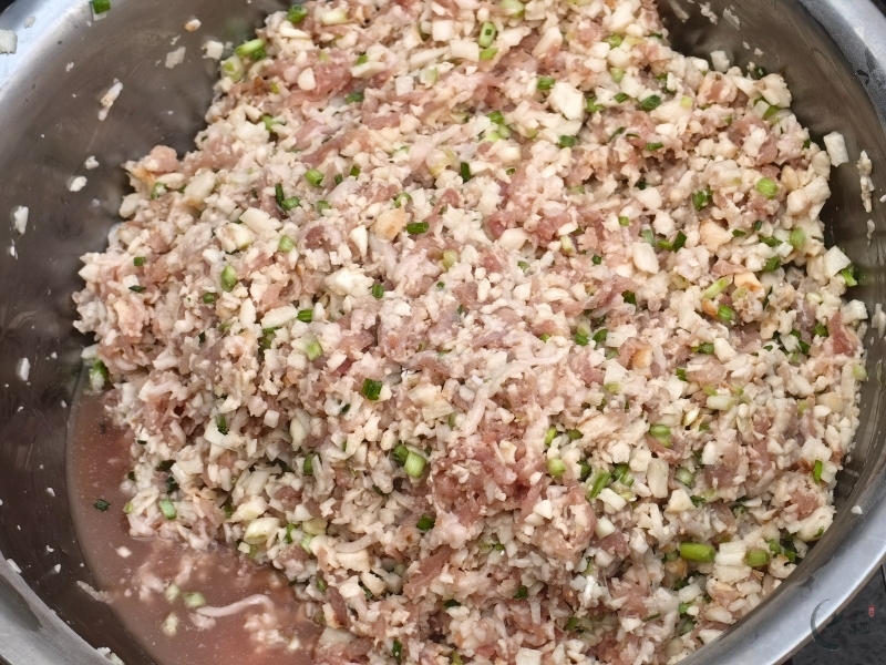 肉的处理:猪肉最好手切,保持颗粒感,是口感丰富的原因之一。