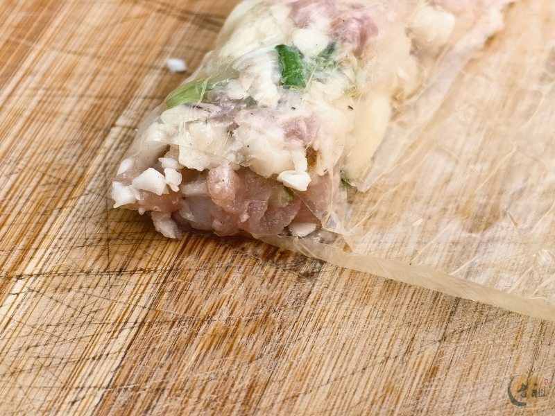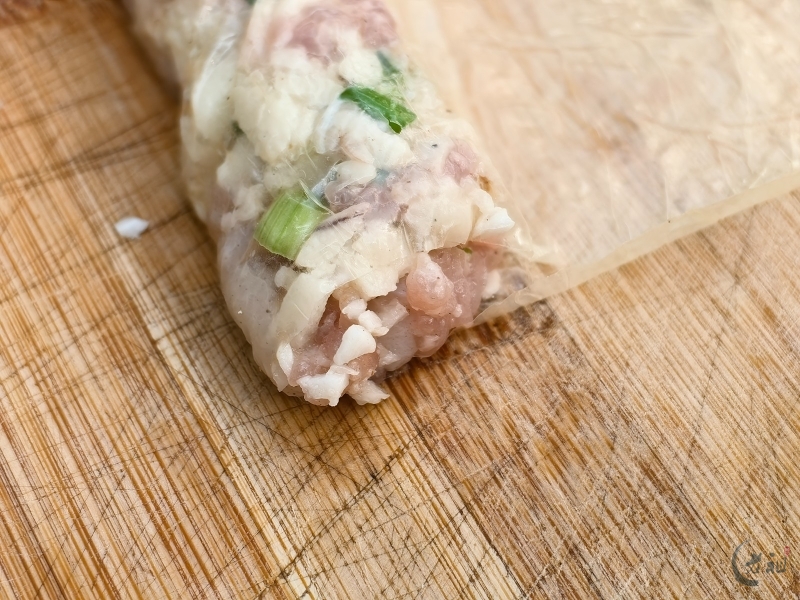 将猪肉切成小丁,或者用绞肉机稍微绞一下,但千万不要绞成肉泥,保留一些颗粒感,口感会更好。马蹄去皮后切成粗粒,葱白或红葱头切碎。