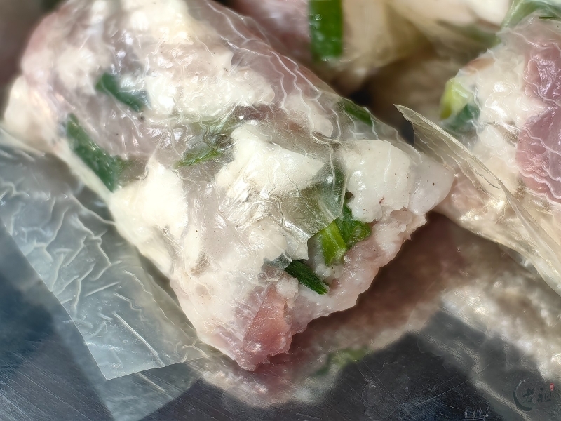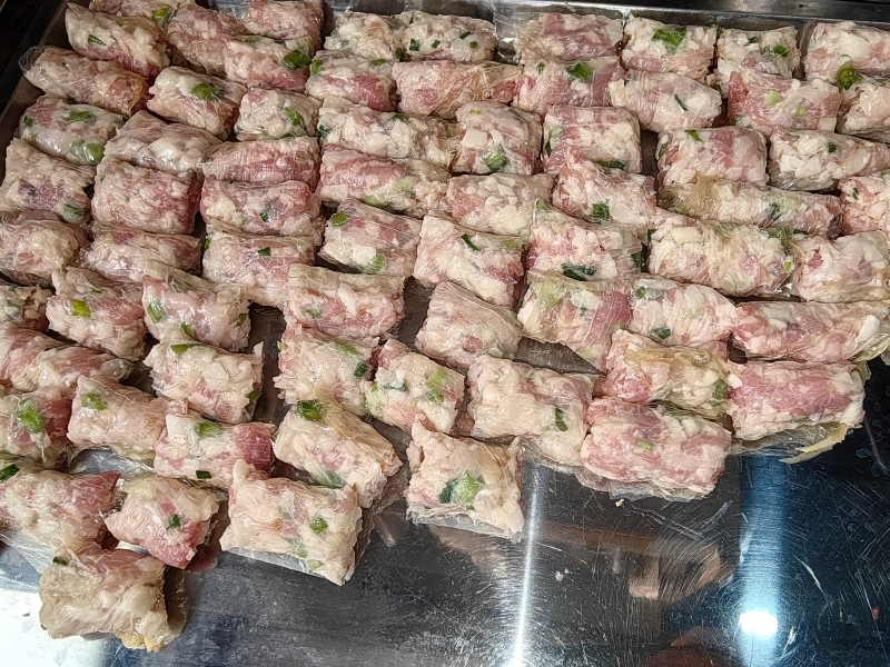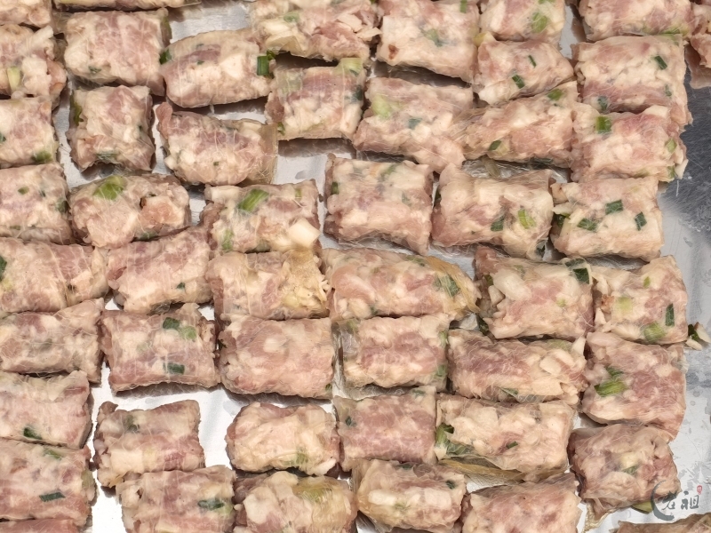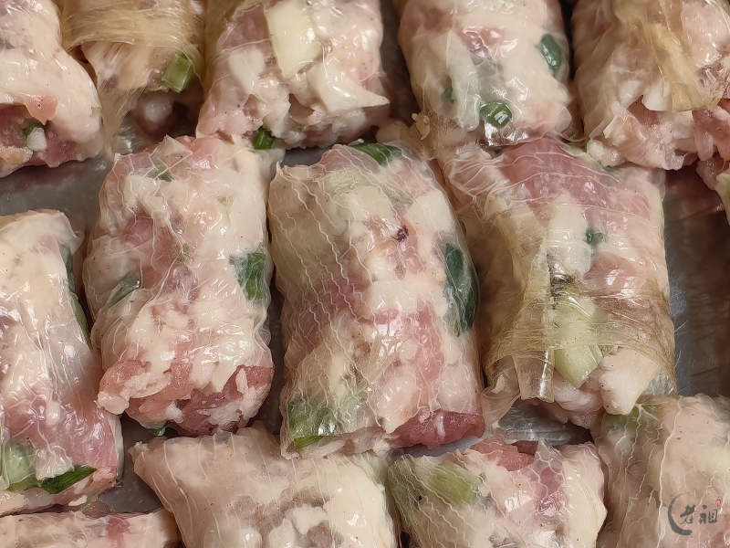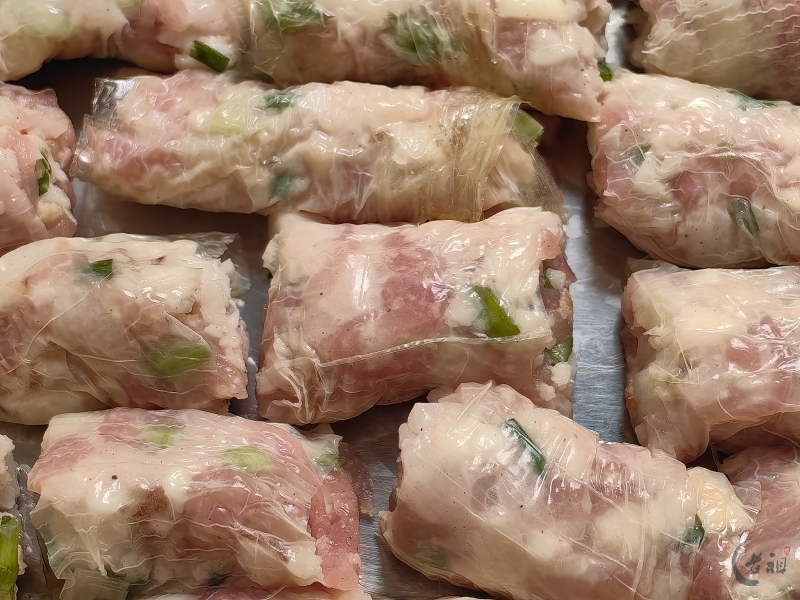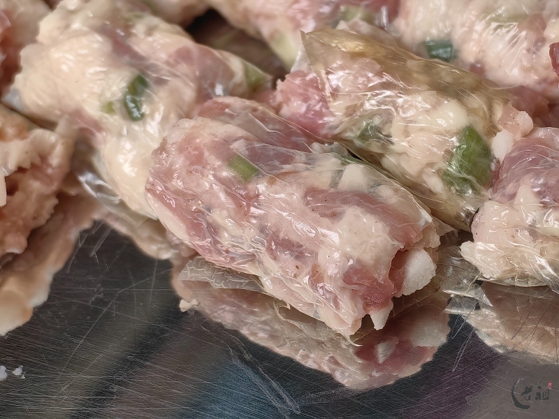 馅料方面,洪阳人同样偏好使用瘦肉。他们也会在馅料中加入薯粉、马蹄粒、葱粒和五香粉等,调制成馅。