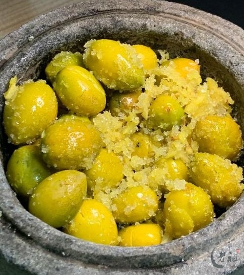 聪明的妻子想出了一个办法。她将后院树上最饱满的橄榄一颗颗摘下来,洗净、晾干。然后,她搬出沉重的石臼,将新鲜的南姜刮去外皮,细细擂成末。伴随着“砰砰”的捶打声,橄榄被敲出了裂痕,她迅速拌入粗盐和南姜末,让咸辣的味道强行渗透进橄榄的每一个毛孔。最后,她将这寄托着思念的橄榄糁一层层压实,装入陶坛,用稻草和黄泥封死坛口,将其藏于阴凉的墙角。
