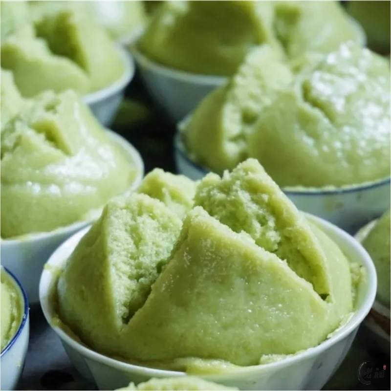 锅盖揭起的瞬间,一股清香扑鼻而来。草青色的朴籽粿一个个鼓胀着,顶端自然裂成三瓣,笑口大开,如春日的花朵般绽放。这“开口笑”被视为制作成功的标志,潮汕人说“炊粿笑笑是雅粿”,见了这笑脸,心里也跟着欢喜起来。