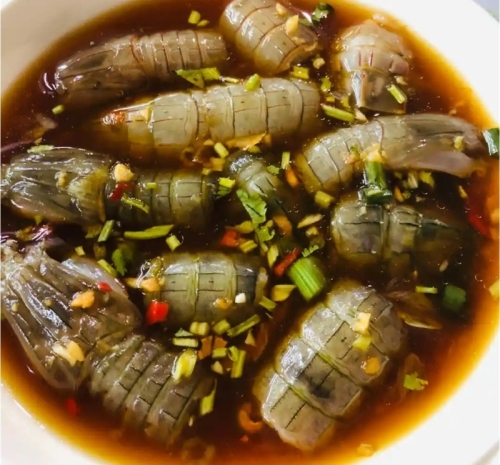 腌虾姑:将切段的虾姑直接放入调好的腌汁中。因为虾姑肉较易入味,腌制时间不需太长。搅拌均匀后密封冷藏2-4小时,口感最佳,肉质保持弹嫩。