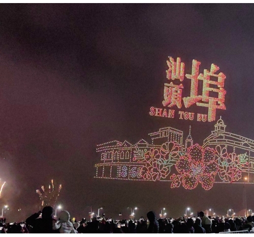 当无人机以天为幕,复刻出小公园开埠区骑楼建筑群,“焰火九层浪”书写著名作家老舍歌咏汕头之诗句,兰花、金凤花等汕头市花在空中次第盛开,铺展成一幅花开报春的盛世画卷。
