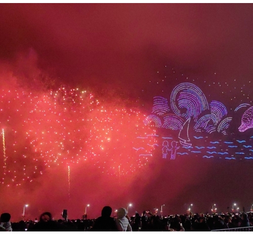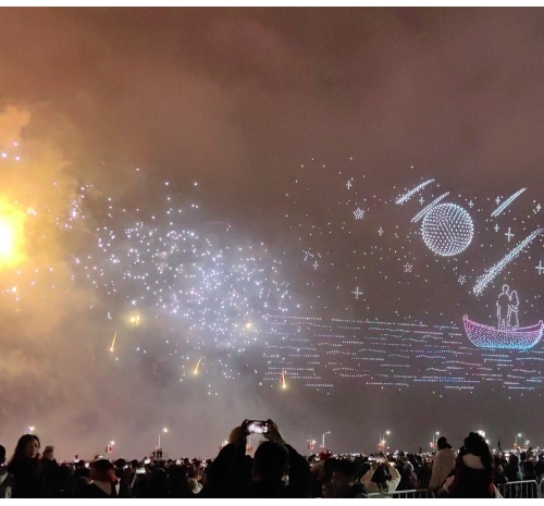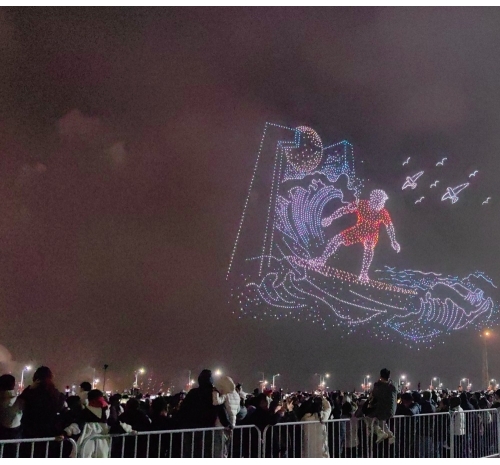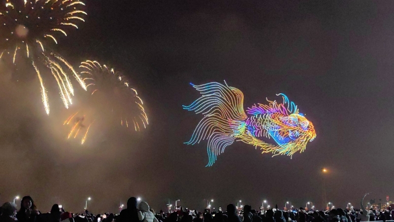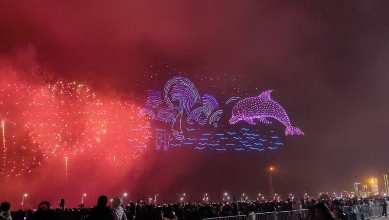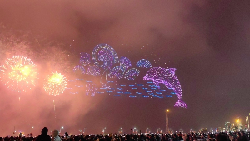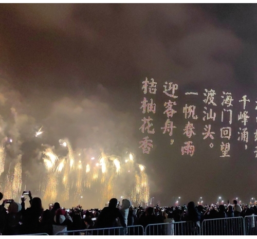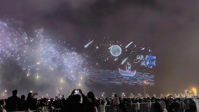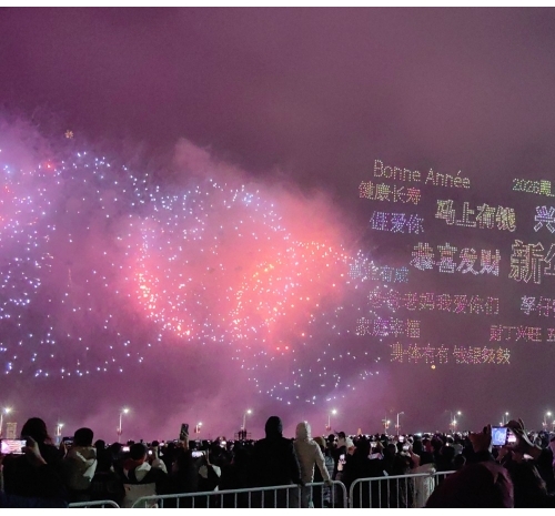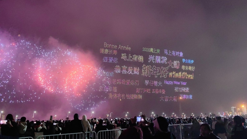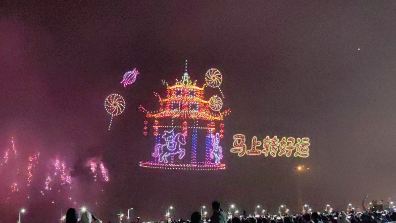 在这一篇章里,多语种、多国别的新年祝福弹幕,与海湾粼粼倒影交相辉映。伴随漫天焰火,表演迎来最高潮——无人机编队将直接呈现本次晚会主题“马汕有好事”,祝福马年千里、万事大吉。