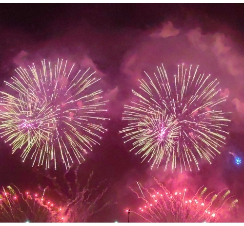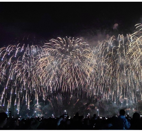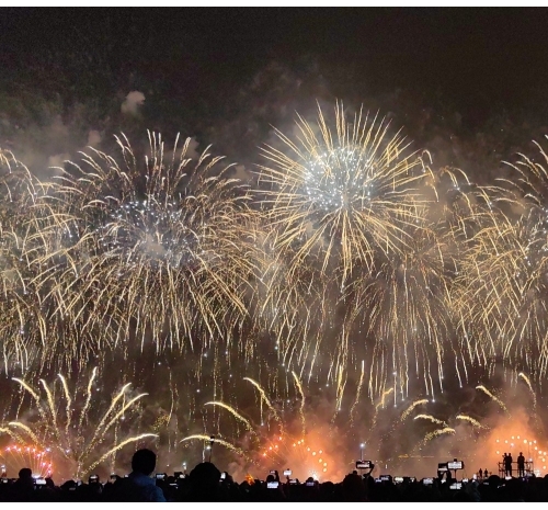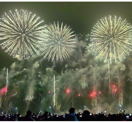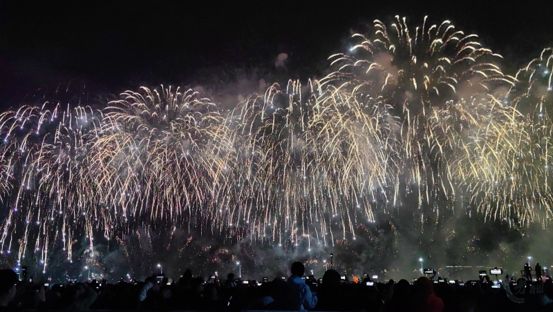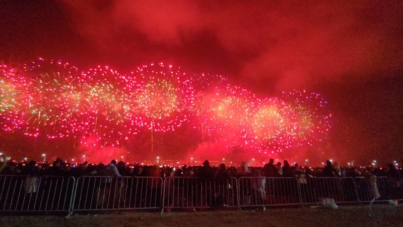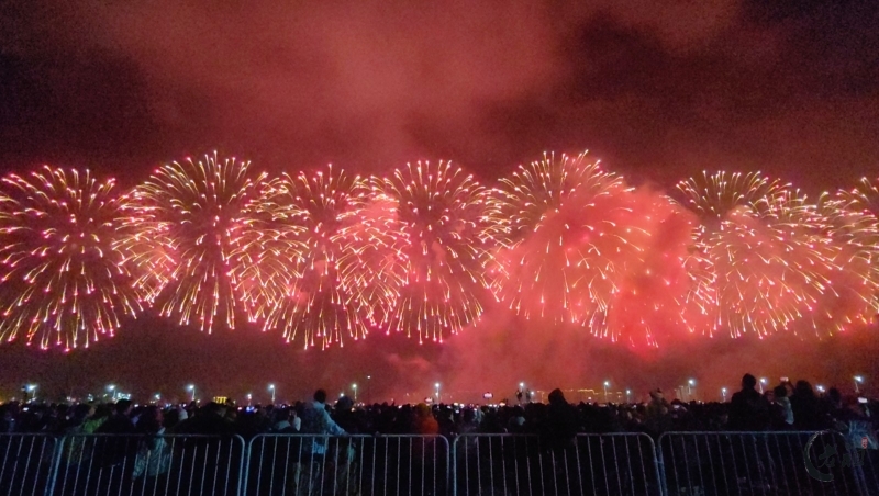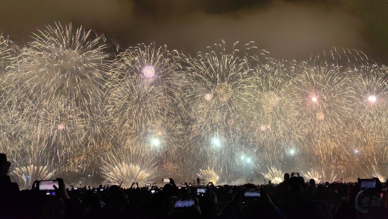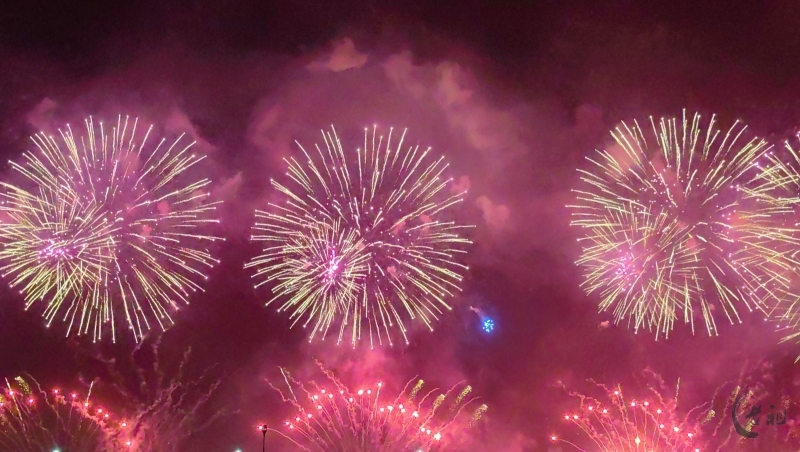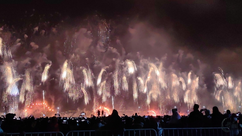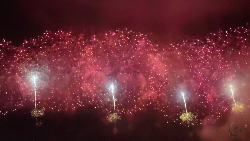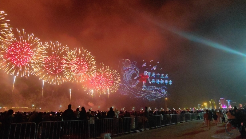 “马跃潮头承文脉,汕聚华章启新程”为主题,采用9艘焰火船组成1.2公里燃放阵线,使用包括直径达150米的12寸烟花在内的近11万发烟花,并配合1万架无人机编队和26台激光设备,打造国内首次超大规模三维动态交互表演。