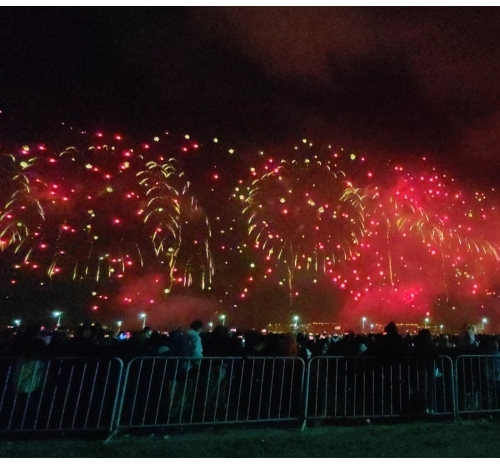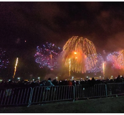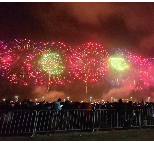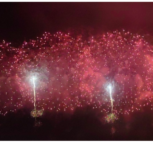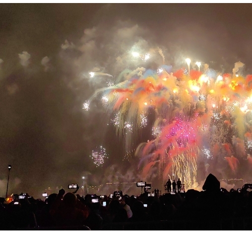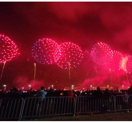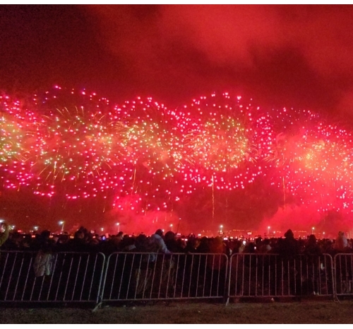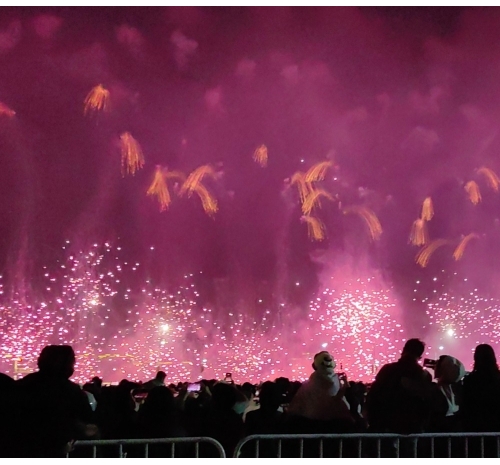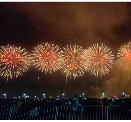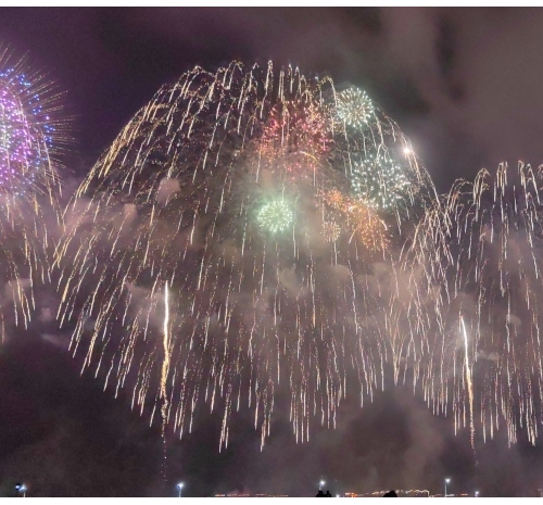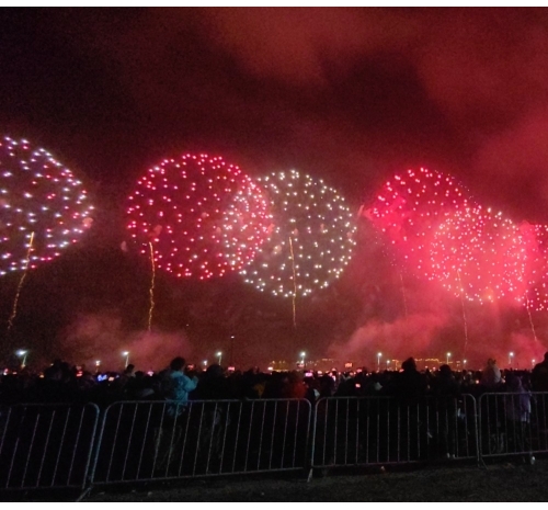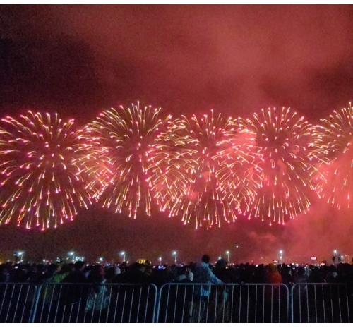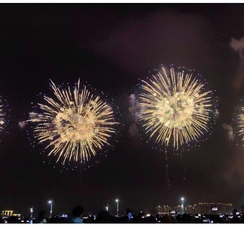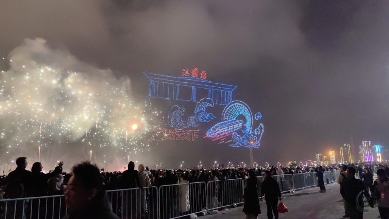 烟花如数字星河倾泻而下,将内海湾化为流动的科技大秀,带来硬核又浪漫的视觉盛宴。海上风电、350高铁,气势磅礴、未来感满满,彰显着汕头走向深蓝、逐梦前沿的壮志雄心。