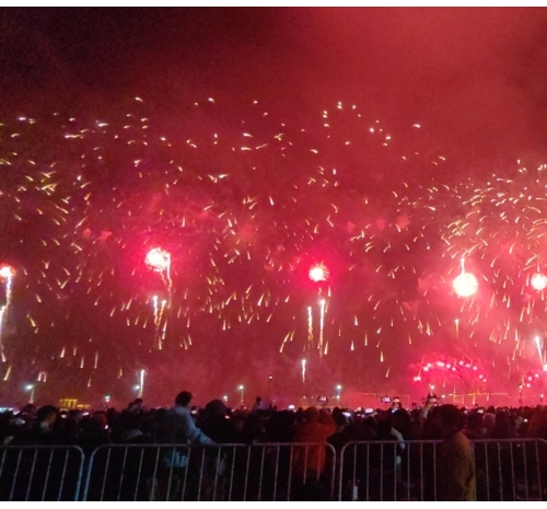 缤纷焰火化作国内最大七彩祥云树,鳌鱼祥瑞满盈人间,小公园中山亭化身旋转木马,“天下第一福”闪耀长空,百载商埠在今夜向全世界送上最具心意的新春祝福。