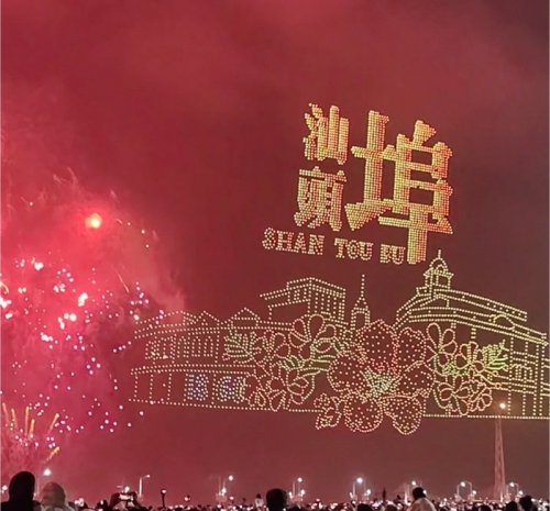 活动以马跃潮头承文脉,汕聚华章启新程为主题,采用9艘焰火船组成1.2公里燃放阵线,使