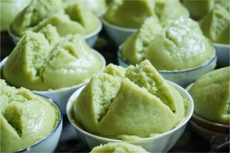 锅盖揭起的瞬间,一股清香扑鼻而来。草青色的朴籽粿一个个鼓胀着,顶端自然裂成三瓣,笑口大开,如春日的花朵般绽放。这“开口笑”被视为制作成功的标志,潮汕人说“炊粿笑笑是雅粿”,见了这笑脸,心里也跟着欢喜起来。
